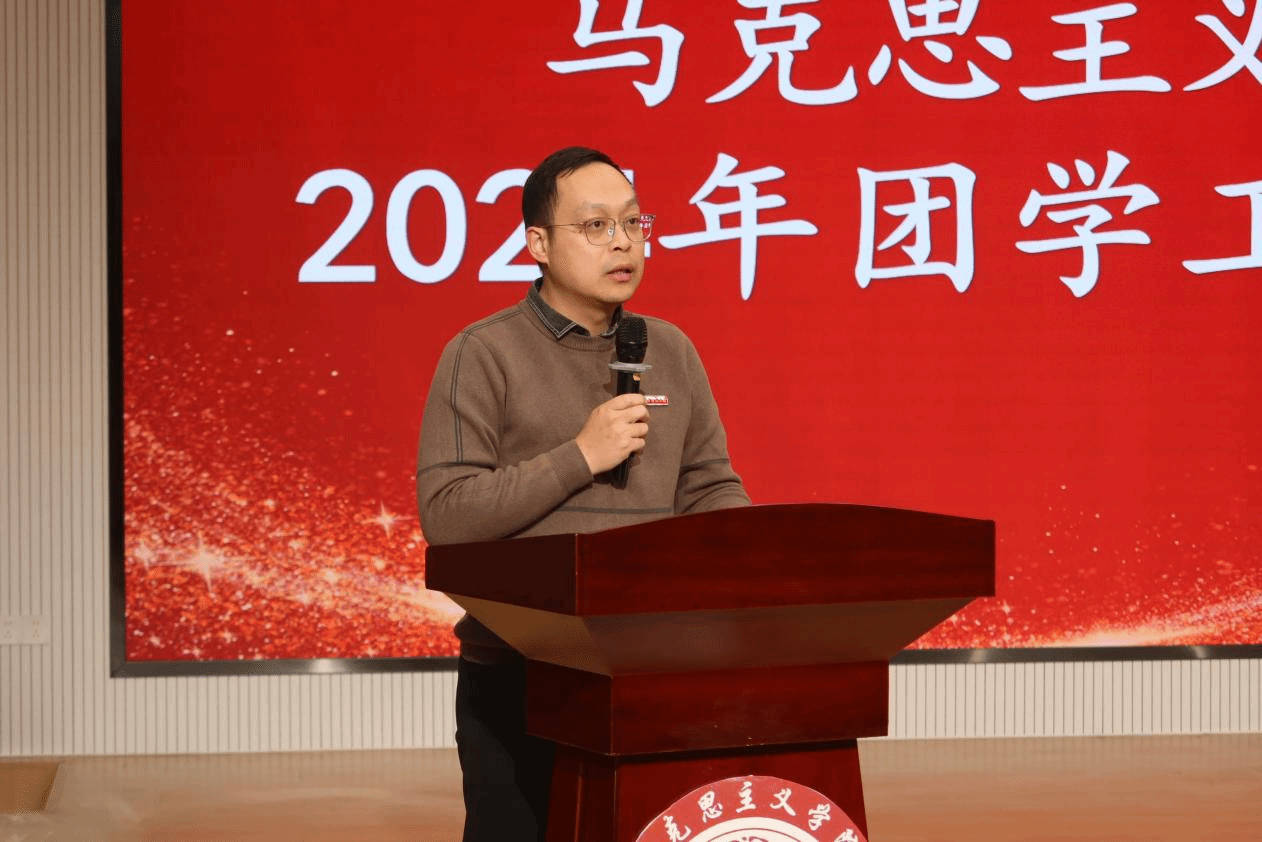党委副书记邓战军对本次学生组织述职报告会进行总结。他充分肯定了各学生组织在2024年取得的成绩,并代表学院对为作出贡献的每位学生表示感谢。他在讲话中指出,本次述职报告会是一次宝贵的进行工作经验交流的机会,每位学生应从本次述职报告会中汲取经验,为今后的学习、工作和生活打下坚实的基础;他强调应重视参加社团组织的意义,拥有热情参与学生工作的情怀,持之以恒地做好学生工作;最后,他希望每位同学都能于日常的点点滴滴中逐渐养成良好的时间观念,并在参与学生工作中不断提升大局意识,成为一名笃学实干的马院人,以雄赳赳气昂昂的姿态迈入马院发展新征程,始终保持踔厉奋发的精神面貌携手创造马院新辉煌。