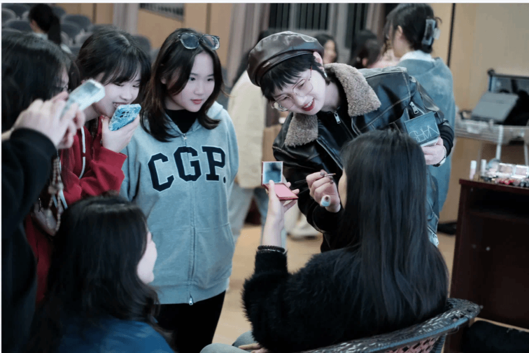 讲座中,林夕女士着重强调底妆的重要性,并以此为核心,详细解析了不同肤质的护理要点和底妆适配度。她进一步展示“职场妆容金字塔模型”,从无瑕底妆到唇色选择,分步讲解职场妆容的核心要素,为同学们“解锁”职场妆容的奥秘。