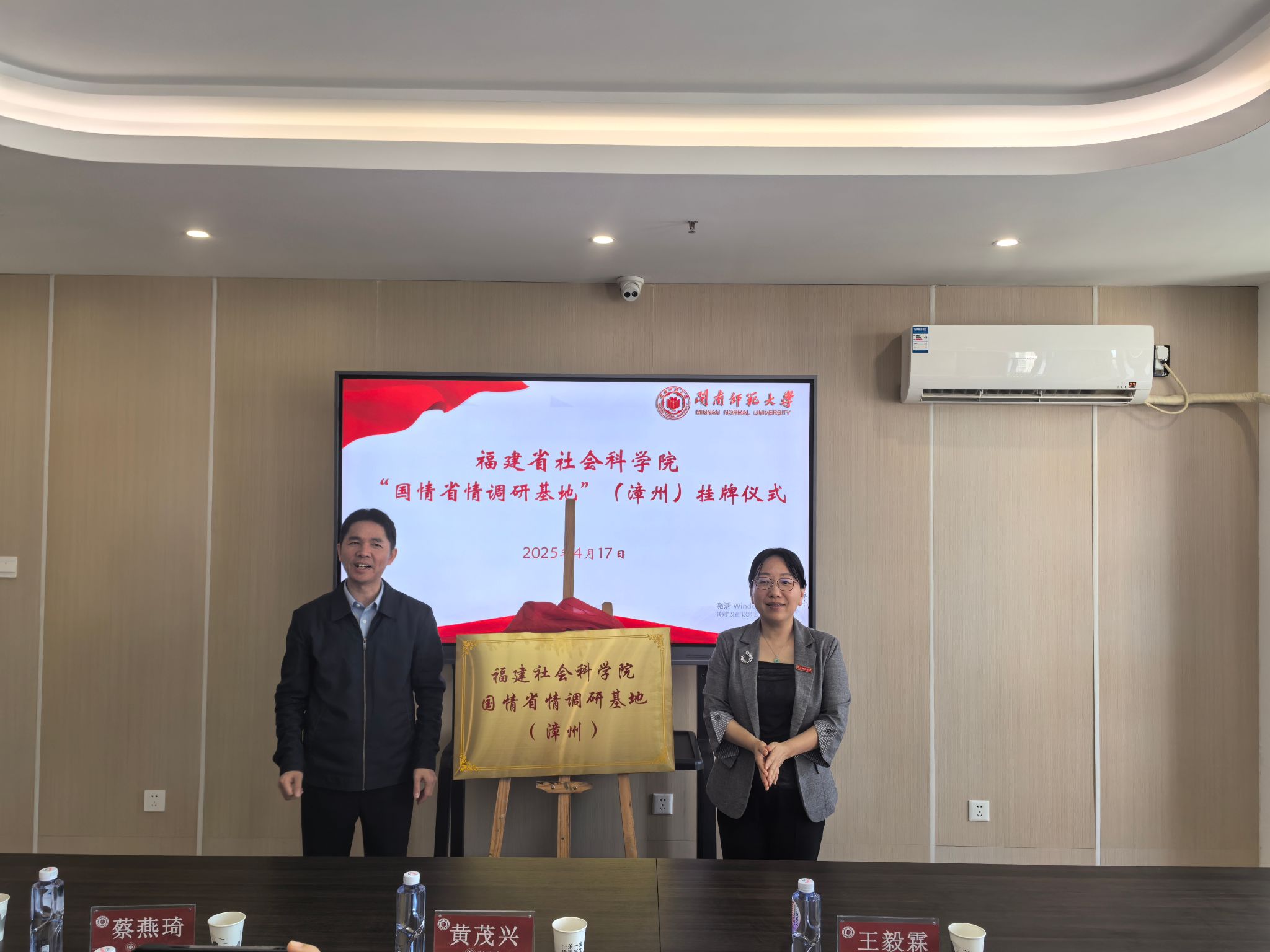 调研座谈期间,黄茂兴与廖志丹共同为“福建社会科学院国情省情调研基地(漳州)”揭牌。