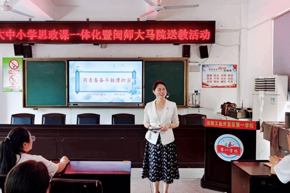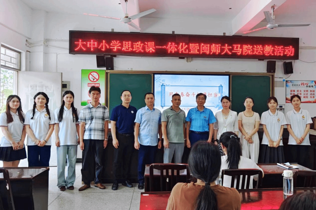 院长陈再生、辅导员潘怀杰的带队下,学院组织思政学科送培送教讲师团前往云霄云陵工业开发区第一学校开展下沉式培训活动,走进中学部、小学部,扎实推进大中小学思政课一体化建设。