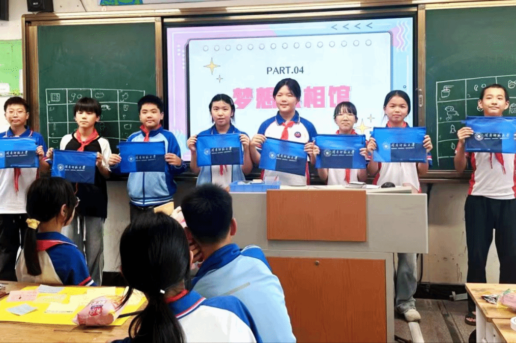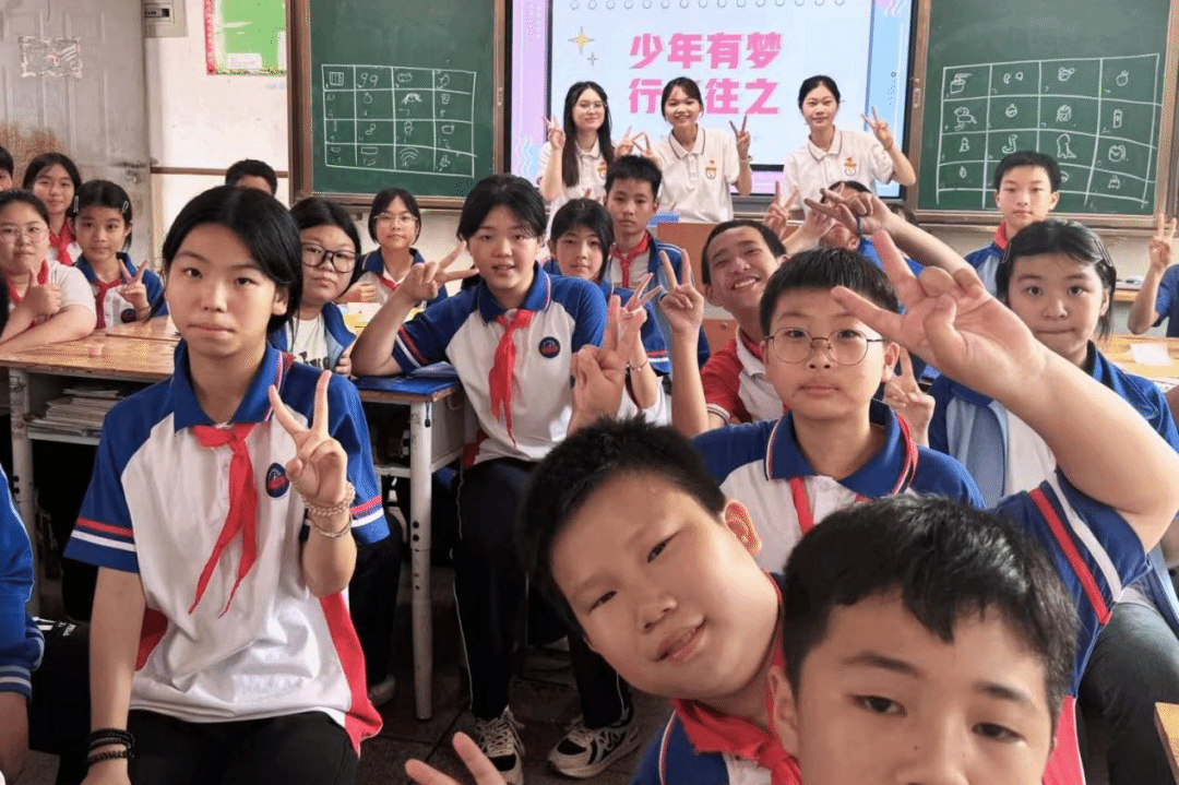 24级学科教学(思政)研究生黄诗琴主讲,24级研究生林孟、许玮琳协助,以“少年有梦,行必往之”为主题。活动伊始,“绘制少年梦想”环节让同学们在纸上书写自己的梦想,“宣告少年梦想”环节,同学们怀揣着对未来的憧憬走上讲台分享自己的梦想。“张贴少年梦想”环节,同学们分组用梦想装饰卡片,让色彩斑斓的拼贴画承载同学们纯真的憧憬。“梦想照相馆”通过展示AI生成的职业照,与梦想中的自己合影激发了学生对未来的向往。“昔日少年梦想”环节借助纸条图片与视频,使抗战英雄“世界和平”的梦想与今日繁华的联动起来,让学生感悟梦想的传承。最后,“今日中国梦有我”环节使学生认识到中国梦并非遥不可及的宏大愿景,而是由无数个像自己这样的个人梦想汇聚而成。只有当个人梦与中国梦同频共振,才能汇聚起推动国家发展、民族进步的磅礴力量。