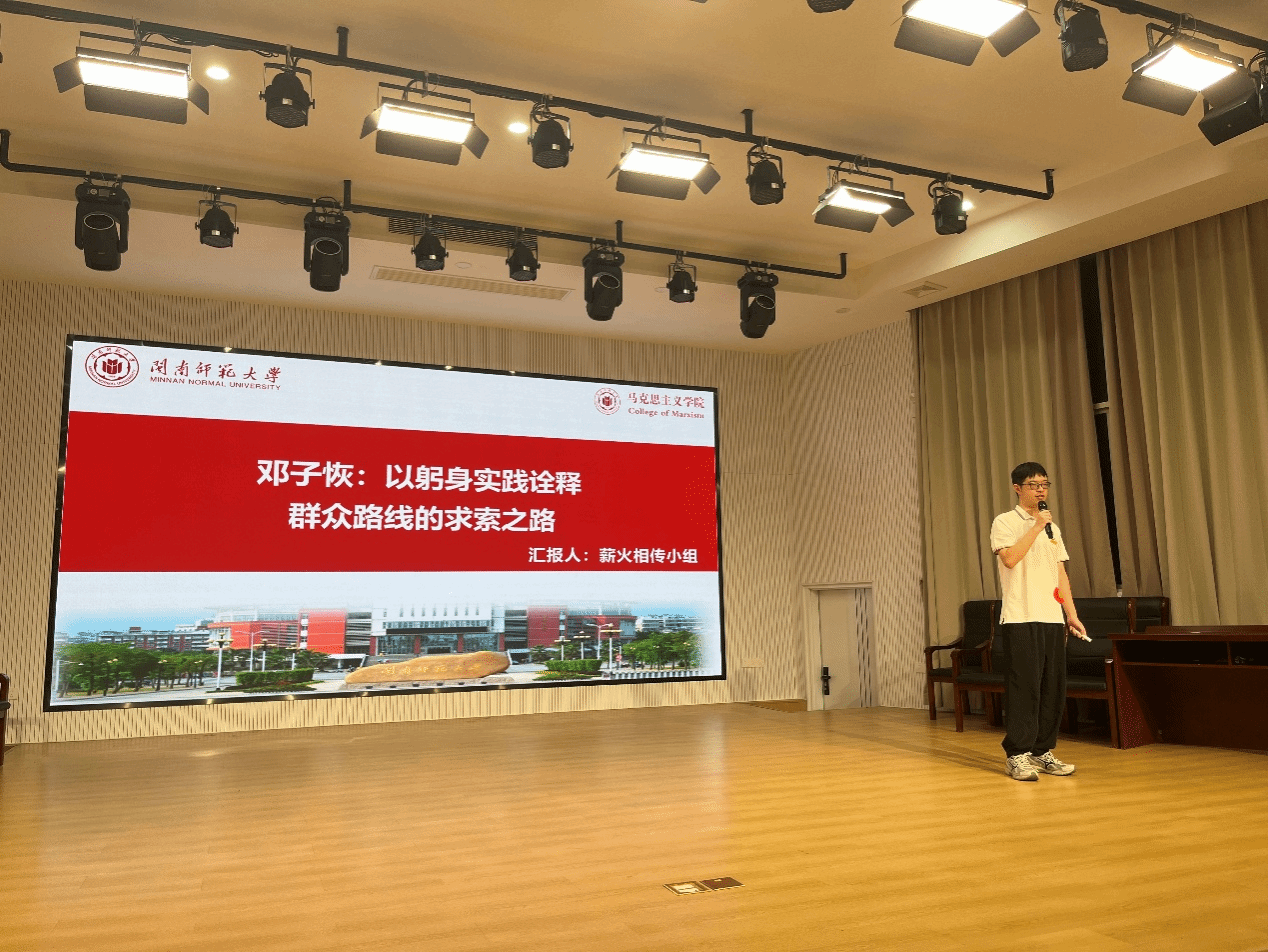 2024级学术型研究生赴龙岩研学实践后举办,旨在让同学们将实践所学转化为思政教学成果,展现新时代大学生的马克思主义理论素养和精神风貌。本次比赛共分十个小组,各个小组选派一名代表上台进行风采展示。各小组紧扣 “寻红色印记·擎信仰火炬”这一主题,结合大学思政课中的相关章节或知识点进行授课,内容涵盖闽西革命老区的重大历史事件、英雄人物事迹、红色文化资源以及个人心得体会等。比赛形式为视频录制和现场演讲相结合,每组选手在授课前先播放时长约3分钟的视频,再进行约8分钟的讲课展示。各小组精心准备展示内容,以丰富的史料、鲜活的案例、饱满的热情,为现场师生带来了一场精彩纷呈的思政课,充分体现人兽性交