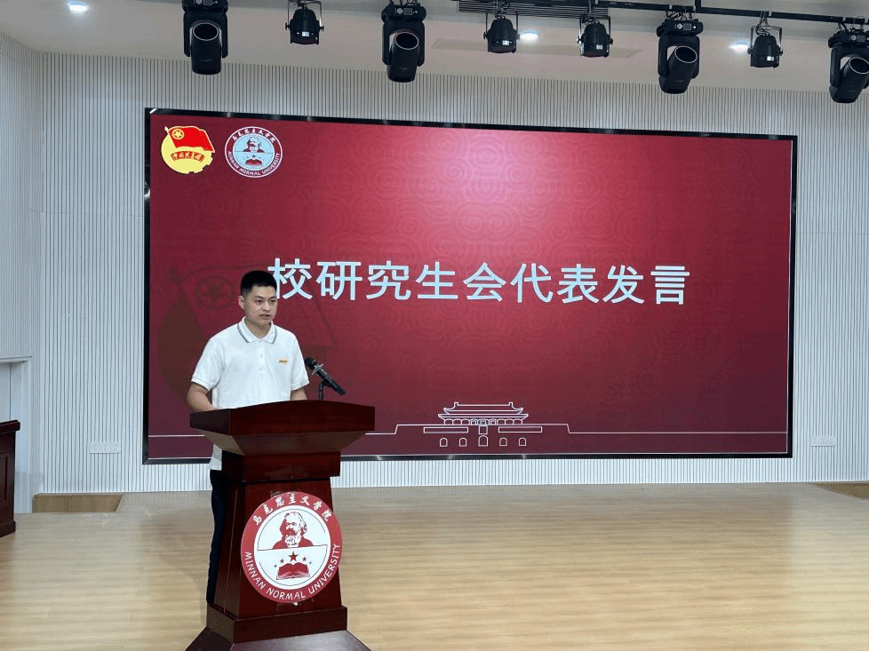 校研究生会主席团代表黄伟淇宣读了校研究生会贺信,他表示人兽性交
