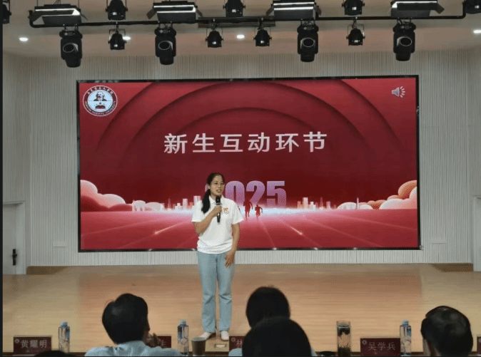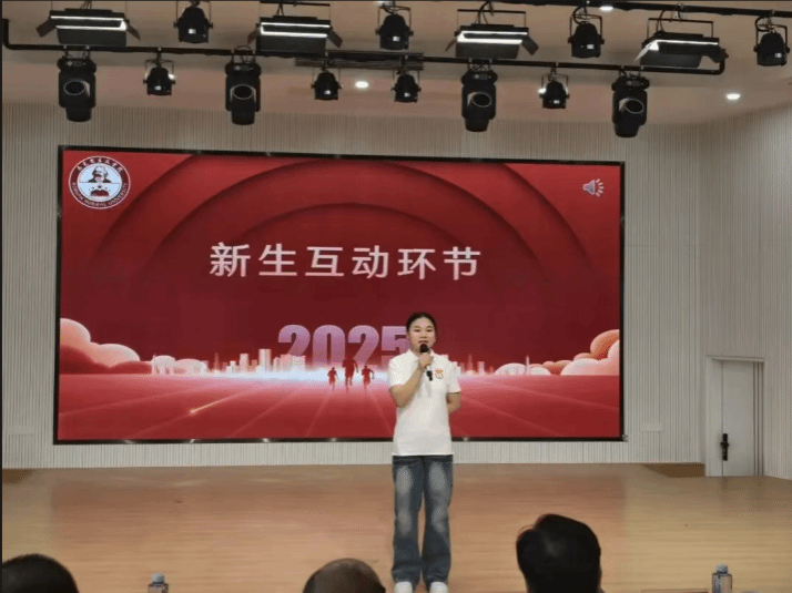教师代表王怡灵老师以关键词“成长”与“铭记”展开,她结合中国人民抗日战争暨世界反法西斯战争胜利80周年特殊节点阐释抗战精神,呼吁新同学们将个人理想融入国家大局。