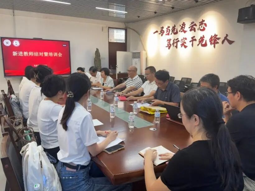 于综中404召开新进教师结对暨培训会。学院党政领导班子,结对导师及新进教师参加会议。