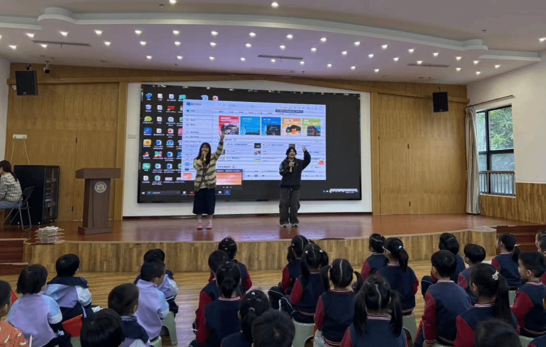 李双和王芷蕾同学带来儿歌串烧表演,她们用亲切的互动与孩子们同唱《左手右手》《快乐女孩》《我和你》等曲目,轻快的旋律迅速点燃了全场氛围,孩子们跟着节奏欢快摇摆,在欢乐中感受音乐的魅力,同时也让爱国情、团结情在歌声中悄然升温;最后,人兽性交