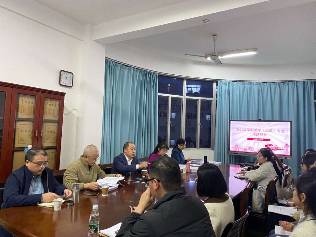 于1月12日晚顺利举行2022级学科教学(思政)硕士研究生毕业论文预答辩。此次预答辩分2个小组,分别由学位点负责人景云、院长陈再生主持。