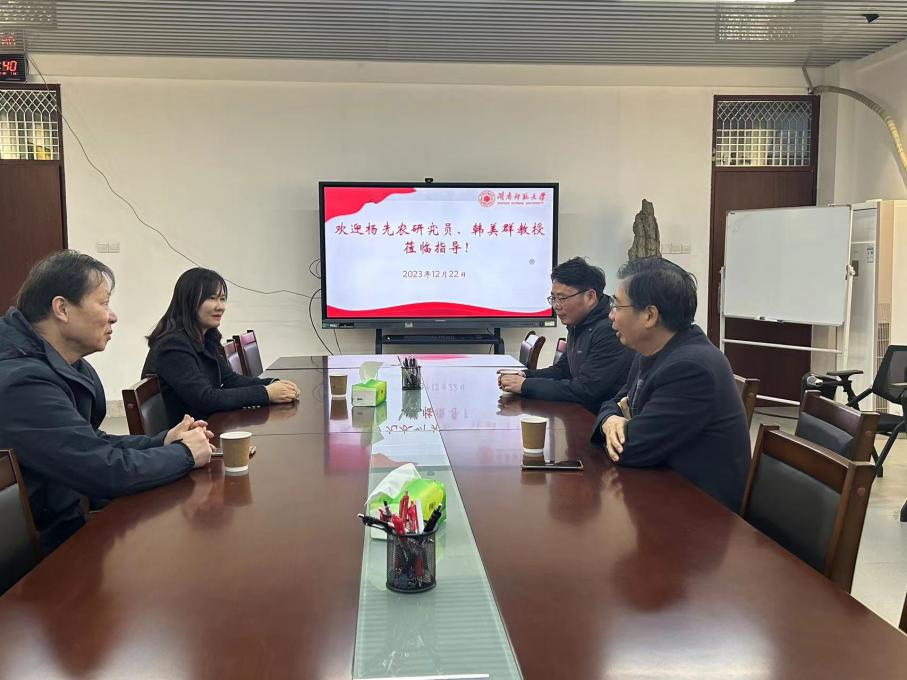 指导,学院院长陈再生、余思新老师在综合楼中区404与来宾进行交流座谈。