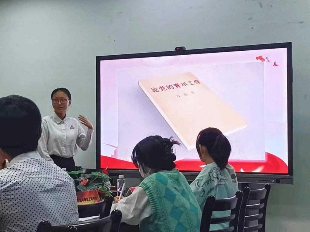 学生会主席团成员池钰琳同学在校联席会议上领学《论党的青年工作》。(通讯员 池钰琳)