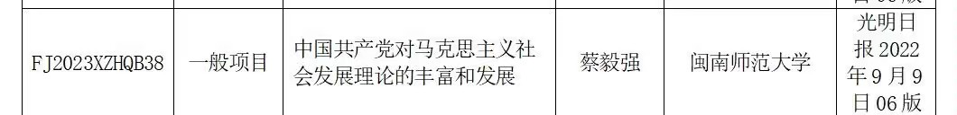 我院蔡毅强教授获得2023年度福建省习近平新时代中国特色社会主义思想研究中心后期资助项目(拟立项)。(通讯员 宋萍香)