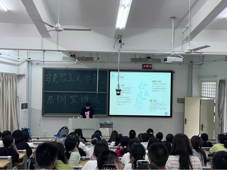 面向2023级学生在圆山校区1号教学楼107召开文明宿舍建设动员会,会上解读了我校宿舍管理相关条例。(通讯员 任程龙)