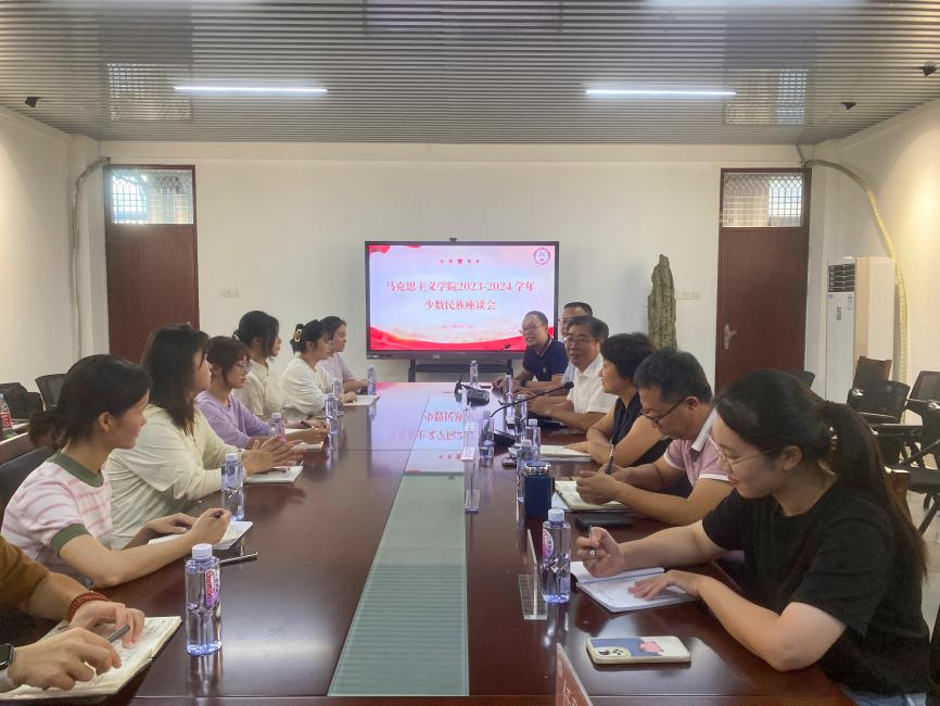 于综中404举行少数民族学生座谈会。学院党委书记方琼、院长陈再生、党委副书记邓战军、副院长牛俊伟、团委副书记潘怀杰、辅导员沈书伊以及学院在北江滨校区少数民族学生参加座谈会,座谈会由潘怀杰老师主持。