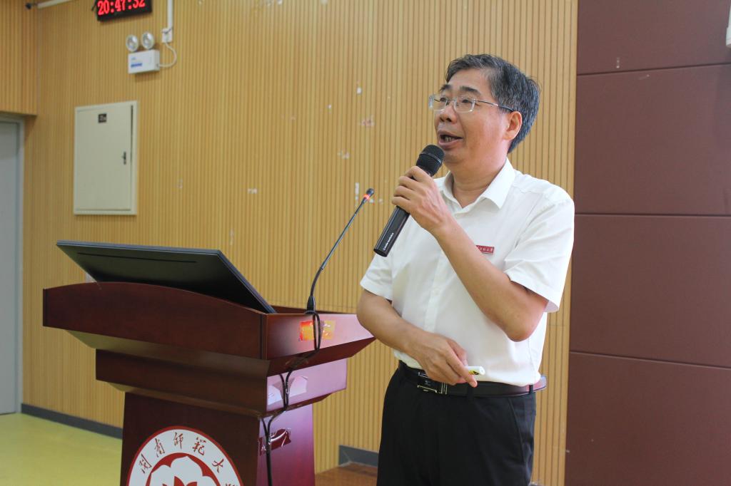 院长陈再生以“我来闽师做什么”的设问开启本次授课。他指出,作为马院人要积极向上,坚定理想信念,关注时政,摆正心态;马院人要好学,学院考研率多年稳居学校榜首,今年更是有5位硕士研究生考上全国重点马院博士研究生,希望在场同学们在良好的学风下接续奋斗,拒绝躺平;马院人要多交挚友,大学作为人生最美好的时期,希望同学们能够交到能够一起奋斗、共担风雨、纯洁有爱的知心好友;马院人要健好体,不仅要文明其精神,也要野蛮其体魄,鼓励同学们积极参加体育活动,强身健体。最后,他与诸位新生定下“你们会成为什么样的人?”“你们会有什么收获?”为期两年、三年或者四年约定。