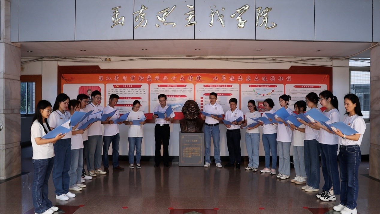 教工第一党支部与部分马克思主义基本原理专业研究生联合开展致敬马克思的纪念活动。活动现场,参与活动的全体人员在马克思塑像前进行了纪念马克思的诗歌朗诵,并重温了恩格斯《在马克思墓前的讲话》,再次深切感受了马克思的人格魅力和历史功绩。