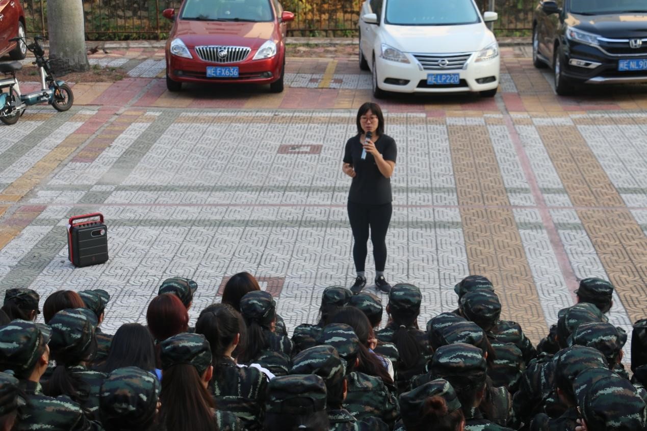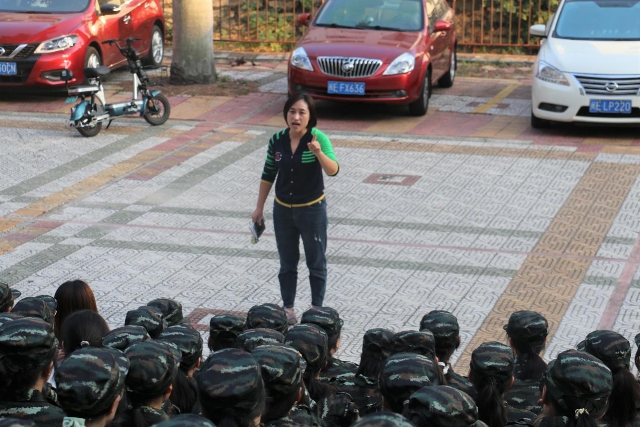 接着,辅导员李艳萍老师就军训期间的各项具体要求和安排发表讲话。她谈到,军训是大学生的必修课,必须高度重视,每一位同学都要向着“优秀学员”的目标前进。她向大家提出四点要求:一是把军训当作一次锻炼身体的机会要积极参与军训训练,服从教官安排,强健体魄。二是要把军训当作一次交流沟通的机会同学们之间要互帮互助,加强交流,创造一个和谐友好的校园氛围,确保军训顺利结束。三是把军训当作一次锻炼意志的机会每一位同学要树立坚强的意志力和必胜的信念,不畏艰难,不惧挑战,勇往直前。四是把军训当作一次思考的机会利用军训,深入思考大学对于自身的意义,以及未来自身的发展方向和发展道路。最后,她希望同学们能始终保持活跃的思想,树立大格局,有目标有想法有行动地朝着胜利前进,用自己的拼搏和汗水为大学生活留下美好的回忆。