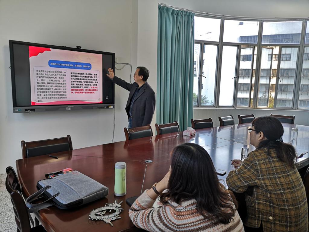 教师第二党支部在综合楼东301室开展党课教学及支部学习交流活动。会上,何孟飞书记给支部党员上了题为“全面贯彻落实党的建设新布局,深入推进反腐败斗争”的党课。何孟飞同志从“新时代党的建设提出的背景”“新时代党的建设布局的历史演进和结构”“从严治党,落实新时代党的建设的八项任务”三个方面分析了党的十九大报告提出的新时代党的建设总要求的丰富内涵以及全面从严治党的重大意义。接着,支部党员就观看纪录片《为了和平》交流心得。各位同志从抗美援朝战争的背景和过程,以及当今世界正处于百年未有之大变局出发,结合《思想道德修养与法律基础》课教学工作开展讨论,大家表示,要把抗美援朝精神融入到思政课堂,培养大学生的担当精神,做中国革命精神的传承者。