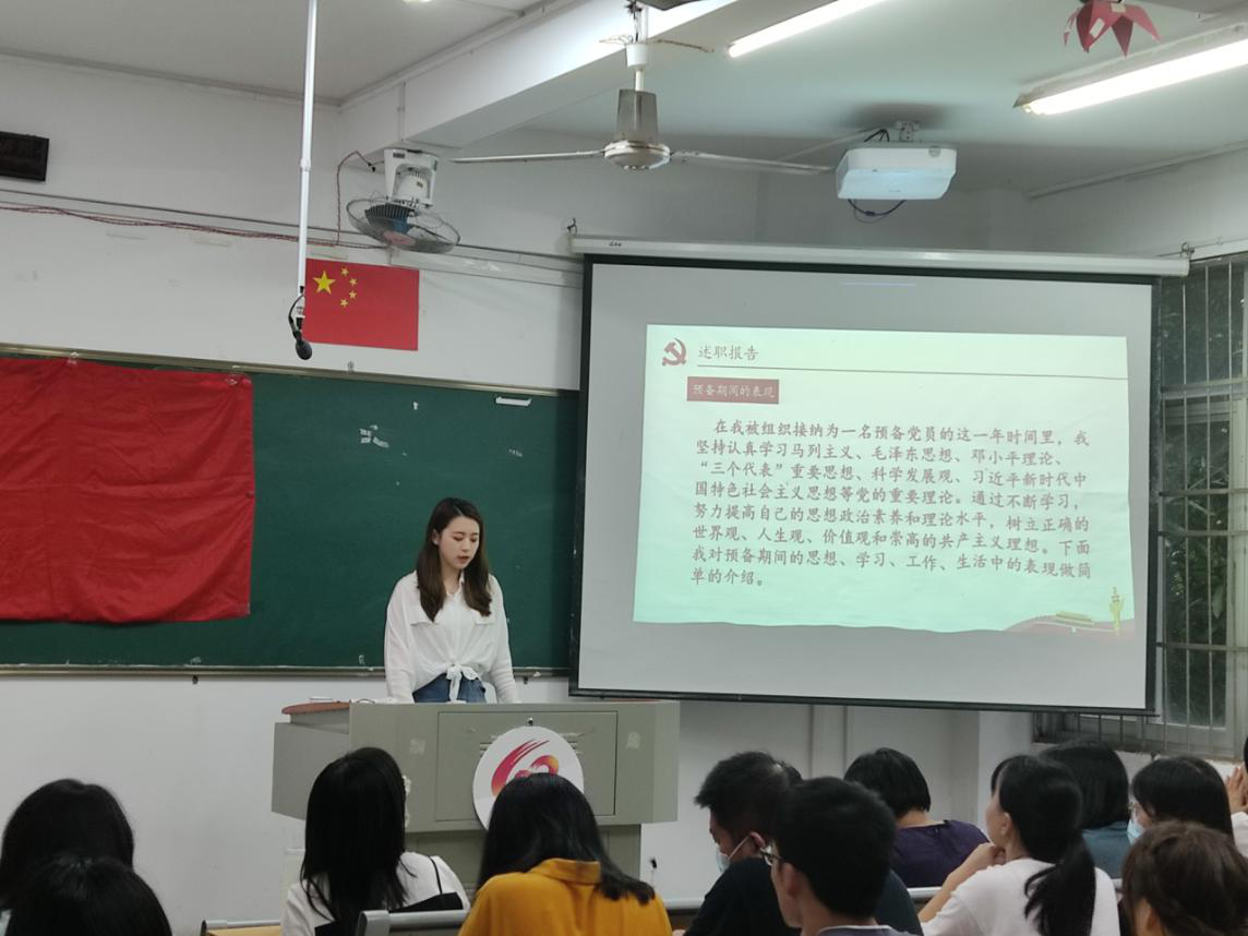 在综南201召开研究生预备党员的转正述职大会,党委副书记陈佳薇老师、党委组织员黄艳红老师、研究生第一党支部书记张妍老师、全体研究生党员、发展对象、入党积极分子参加了此次会议。
