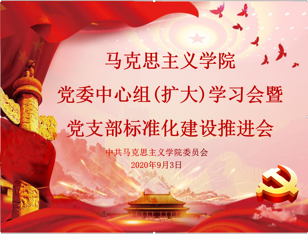 在综中404召开党委理论学习中心组扩大会暨党支部标准化建设推进会,学院党委委员、各党支部书记参加会议。