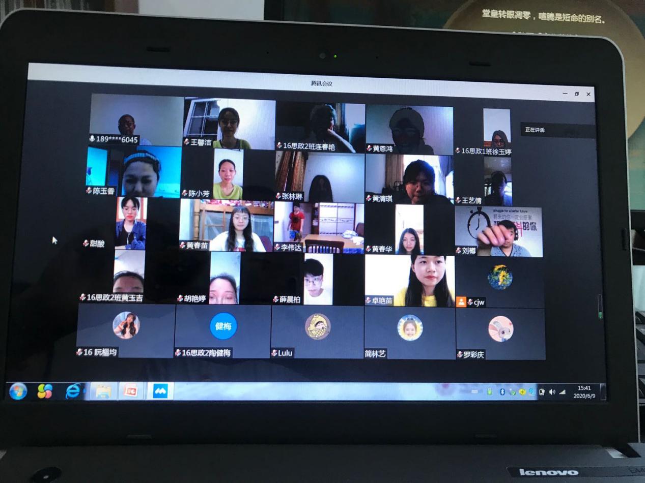 李定庆书记从开展毕业班党员最后一次“云党课”的目的和意义引入,表达了作为同学们大学课堂的最后一次“云党课”的授课老师感到很荣幸。他以二十多年党龄的老党员身份带领毕业班党员一起回顾了七十年来新中国取得的最根本成就以及这些成就背后最本质的特征、七十年来党领导人民进行的最深刻的变革以及党和人民在变革中最突出的表现,描绘出党领导人民不怕压、不信邪、自力更生、艰苦奋斗的一个个辉煌时刻,勾勒出党领导人民戮力同心、发奋图强,从站起来、富起来到强起来的一幅幅壮丽画卷,促进学生党员深刻认识新中国70巨变的伟大意义并解读了“成功密码”。他谈到,实践证明,中国用几十年时间走完了发达国家几百年走过的发展历程,根本原因就如习总书记所说,“中国人民正走在正确的道路上”,这条道路就是“中国特色社会主义道路”。站在“两个一百年”奋斗目标进入历史交汇的关键节点上,我们应该深刻体悟七十年光辉历程带给我们的历史启示:一是中国特色社会主义是党和人民胜利前进的光辉旗帜和必由之路;二是中国共产党是中华民族的脊梁,是我们各项事业取得胜利的根本政治保证;三是改革开放是我们走向世界、面向未来的根本途径和强大动力;四是人民群众是历史的创造者,是决定党和国家前途命运的根本力量。最后,李定庆书记表达了对毕业生党员的殷切期望,希望同学们牢记中国共产党的初心和使命,用党的光辉历史和革命传统持续涵养党性,用习近平新时代中国特色社会主义思想努力武装自己,勇做走在时代前列的奋进者、开拓者、奉献者,成为中国特色社会主义事业的合格建设者和接班人。