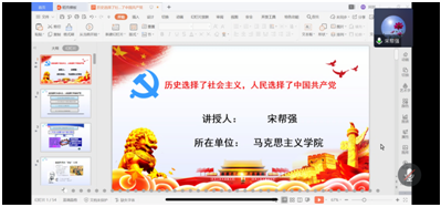 分党校第十六期入党积极分子培训班通过腾讯会议开展第四讲学习。本次“历史选择了社会主义,人民选择了中国共产党”专题培训,由副院长宋帮强副教授主讲,全体入党积极分子参与。