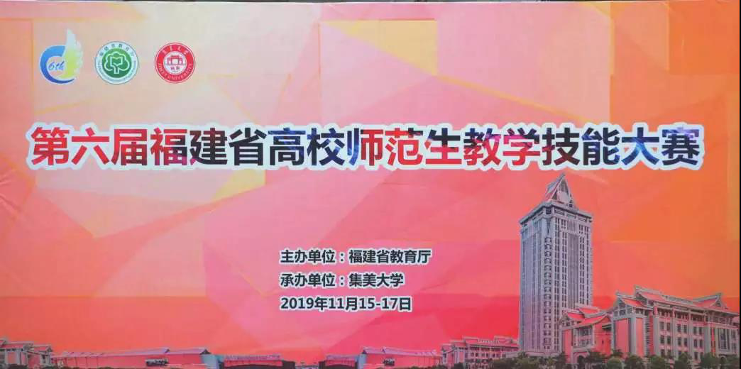 四名选手分别获得第一名、第三名、第四名和第七名的好成绩,景云老师获第六届福建省高校师范生教学技能大赛“优秀指导老师”荣誉称号。