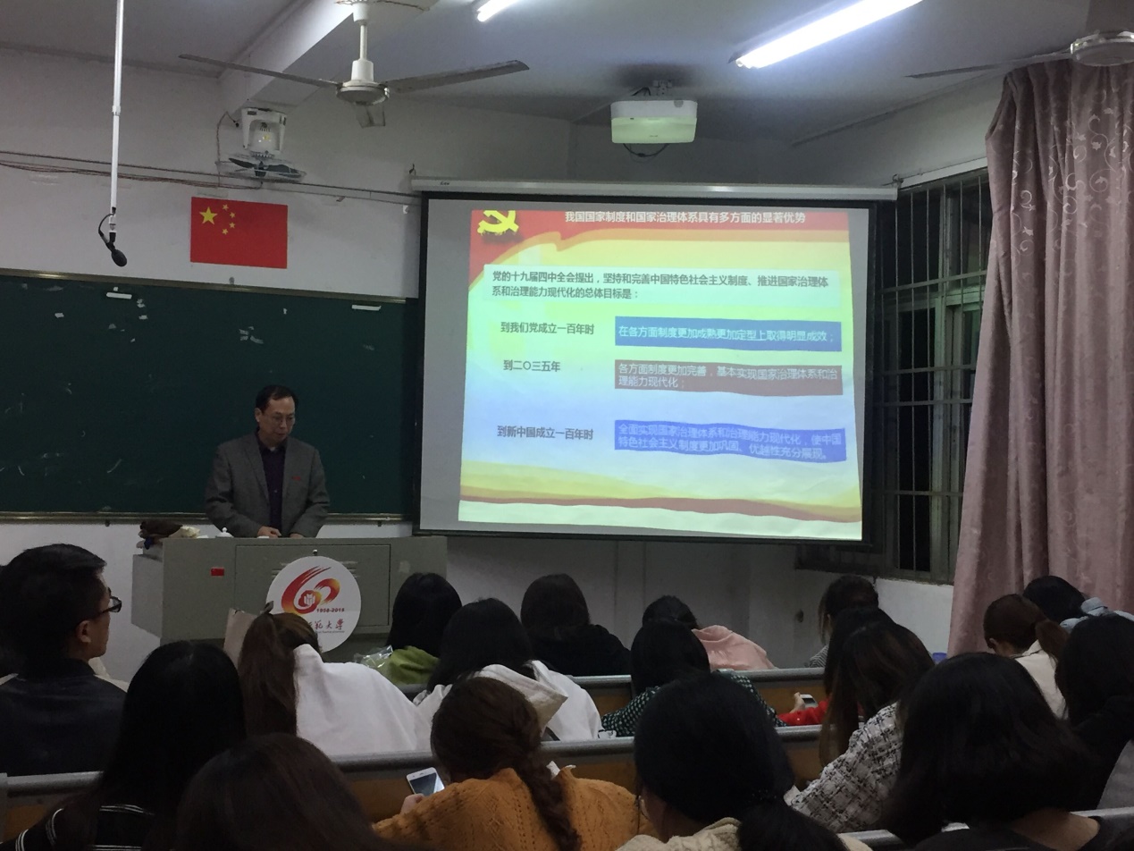 院长助理何孟飞副教授应邀作了题为“解读党的十九届四中全会精神”的专题报告。