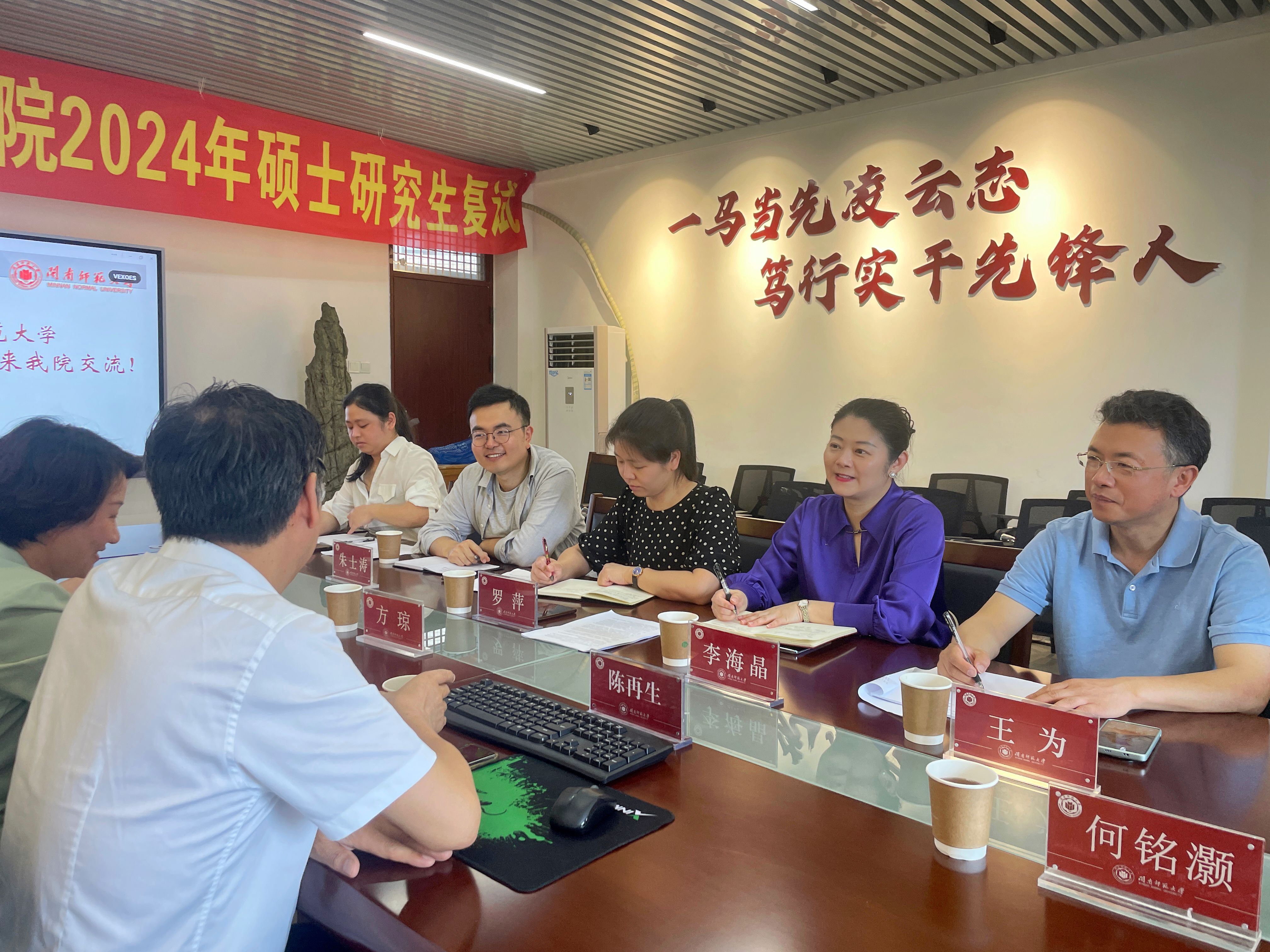 党委书记方琼、院长陈再生教授、思政教育系主任景云教授、思政教育系副主任何铭灏副教授在综合楼中区404与来宾进行洽谈交流。