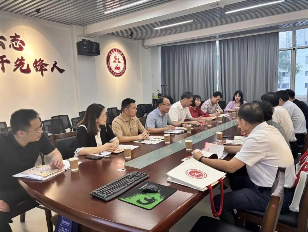 党委书记方琼、院长陈再生、组织员陈精焕、思想政治教育系主任景云教授等在综合楼中区404与来宾进行洽谈交流。