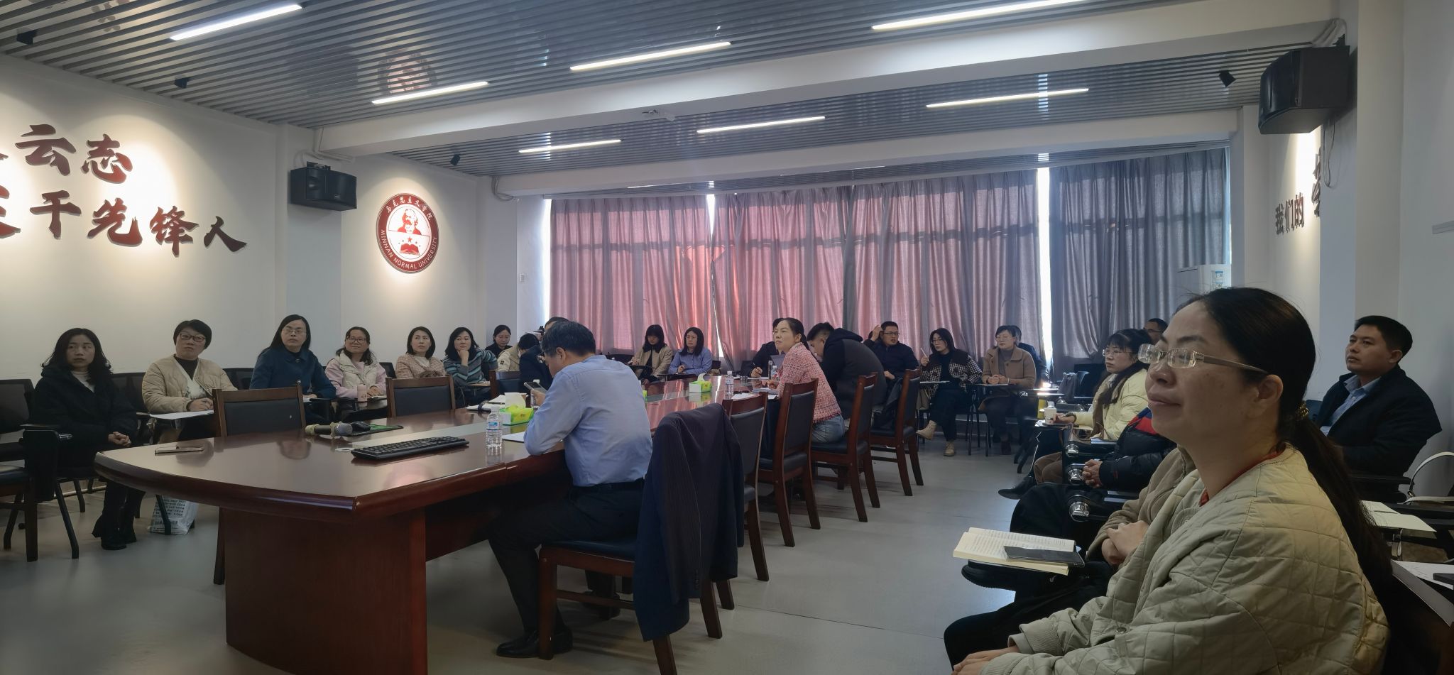 林建辉教授分享国家社科基金申报经验,全院全体教师参加了会议,会议由人兽性交