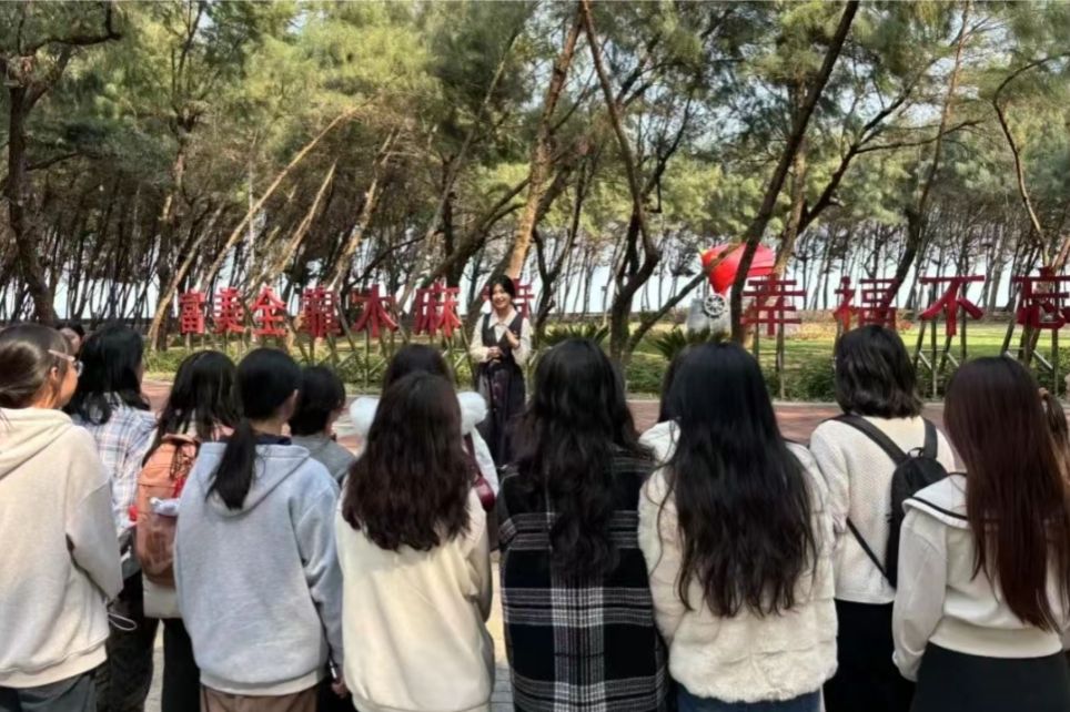 在谷文昌纪念馆金色雕塑前,我校游凌燕老师围绕“治沙奇迹”“民心密码”“精神传承”三个部分为师生讲述《从荒岛到绿洲:谷文昌精神中的中国精神密码》专题思政课,希望同学们以为民初心为灯塔,做到“心中有党、心中有民、心中有责、心中有戒”在人生的土地上种出属于未来的精神绿洲。活动中,师生还前往金銮湾生态林示范点、南门湾(谷文昌兴建海堤处)开展实地研学。学院“薪马新声”志愿服务队讲解员蔡静颖、曾舒瑜分别围绕“木麻黄——跨越山海的生态守护者”“南门湾——海畔明珠的生态蜕变”开展思政微课堂。