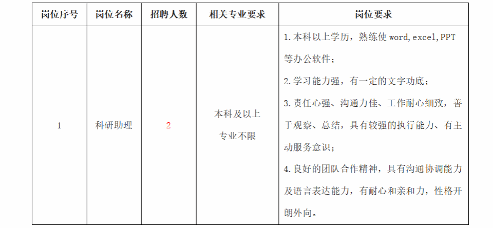 科研助理岗位实施办法》的规定,发布招聘启事: