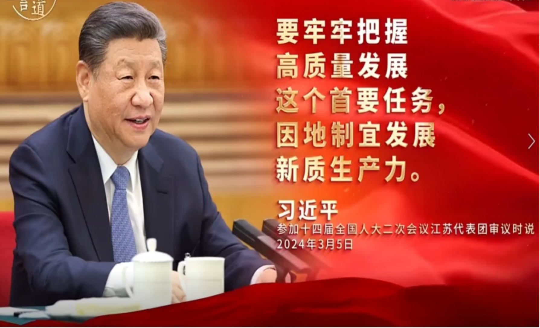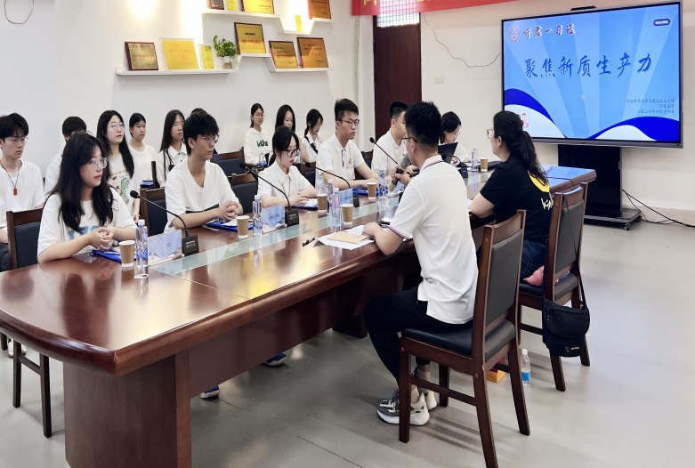 首先,主持人陈涵以一段简短的视频向在座师生展示了今年“两会”习近平总书记在会见江苏代表团时关于新质生产力的原声讲话。与会人员一同倾听学习了习近平总书记有关新质生产力的原声讲话。