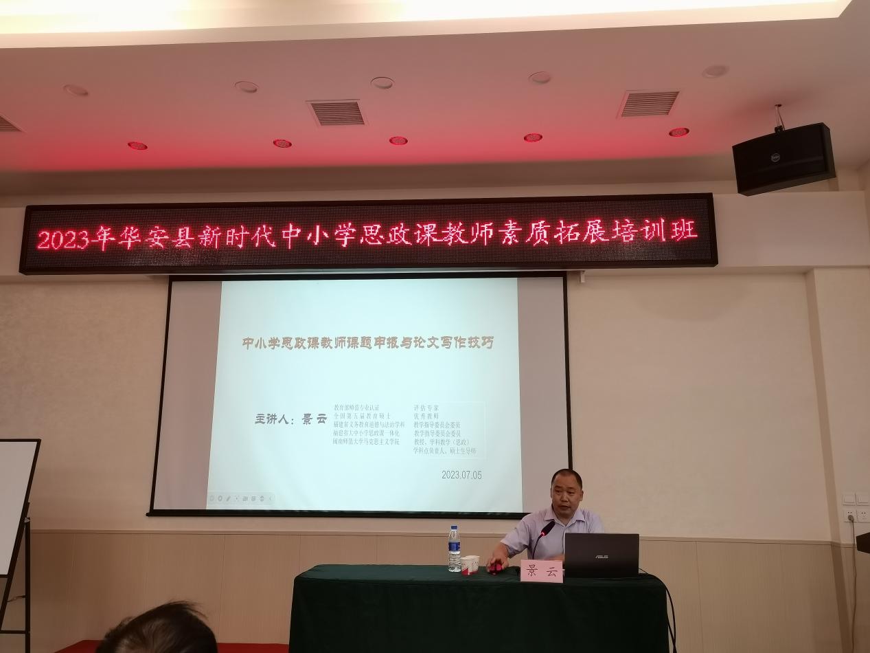 7月5日下午,学院思想政治教育系主任景云教授为学员做了《中小学思政课教师课题申报与论文写作技巧》的素养提升专题讲座。