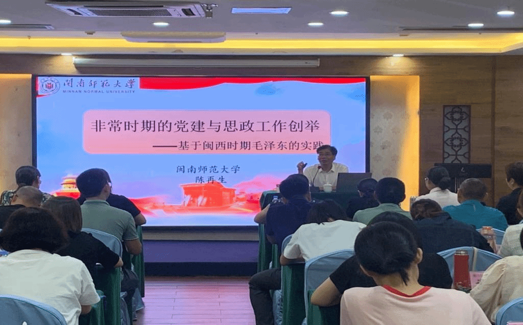 开班式后,陈再生院长为学员们解读《非常时期的党建与思政工作创举——基于闽西时期毛泽东的实践》专题。陈院长引用大量历史事实带领学员走进革命岁月,重新感悟新时代思政课教师的使命担当。
