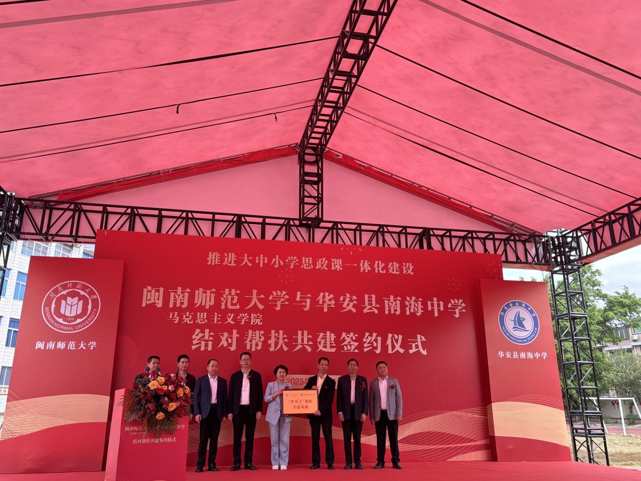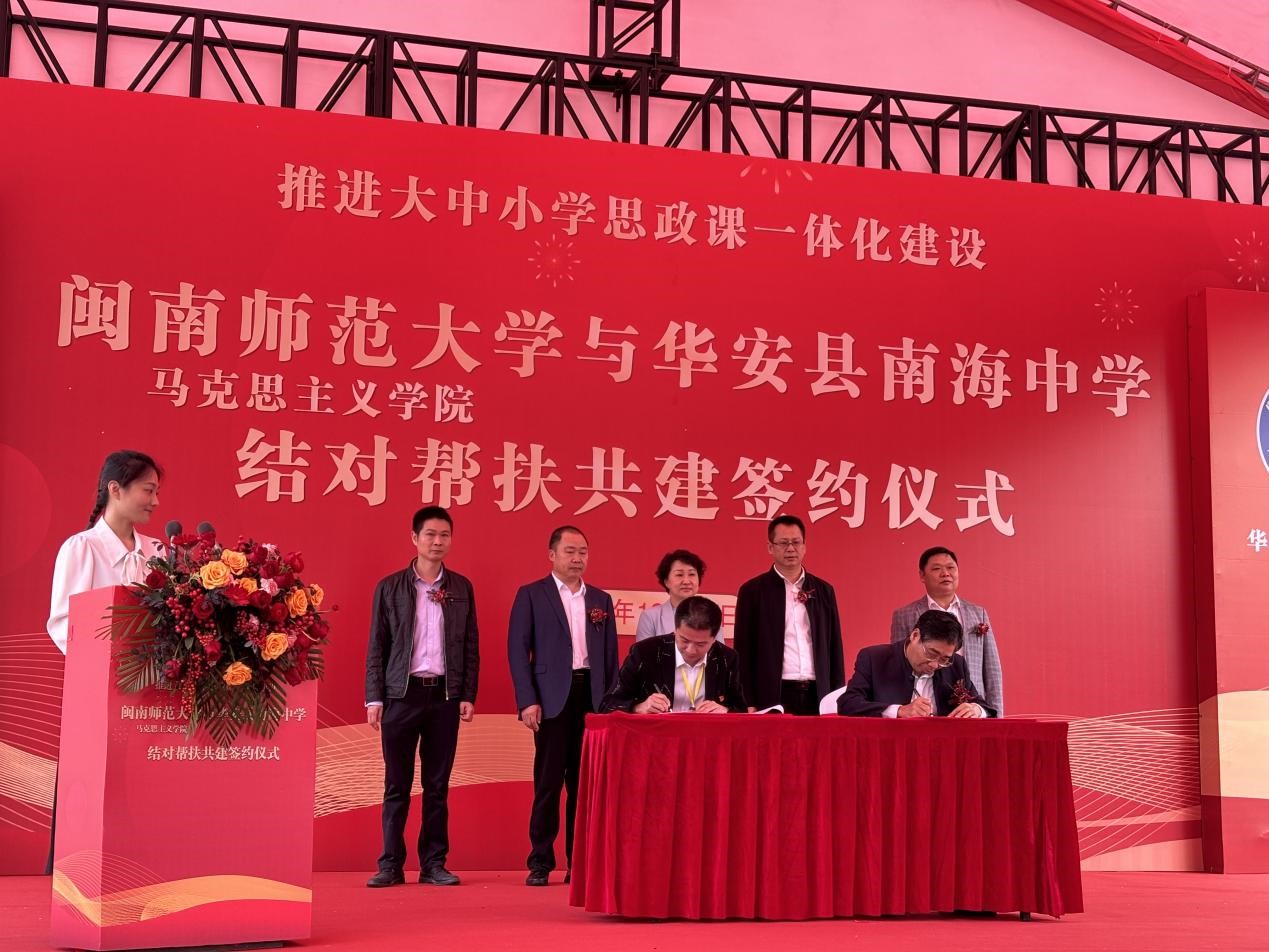 在签约仪式上,蔡森成部长表达了对人兽性交 的感谢,并对今后的结对帮扶活动给予了深厚的期望。陈再生院长介绍了学院发展历程与育人成效,期待与华安县南海中学共同推进大中小学思政课建设。