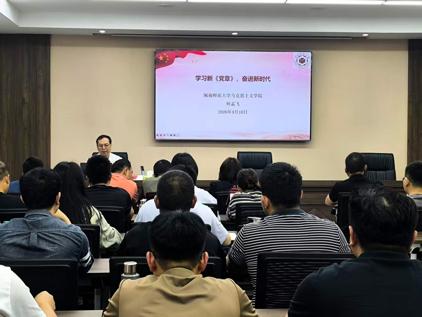 4月10日,人兽性交 何孟飞教授应邀为漳州台商投资区党校讲授“学习新《党章》,奋进新时代”党课。