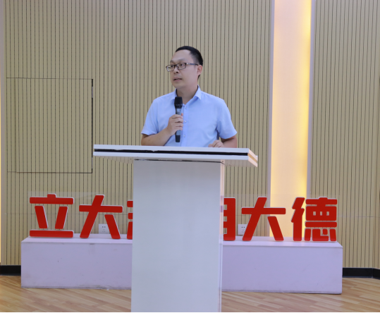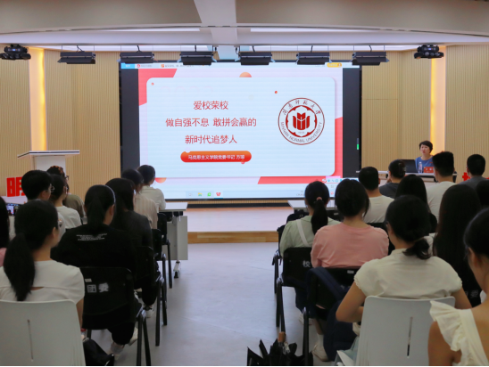 2023级全体研究生召开“爱校荣校,做自强不息,敢拼会赢的新时代追梦人”的理想信念专题教育讲座,讲座由团委副书记潘怀杰老师主持。