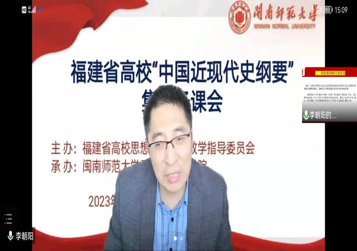 最后,陈再生院长对李朝阳教授的辅导报告做了总结。陈院长要求全体“纲要”课教师积极消化李教授的报告内容,认真研读新教材,用好新教材,讲好“纲要”课。陈再生院长还传达了《中共福建省委教育工委关于组织开展思想政治理论课新教材集体备课工作的通知》精神,要求各校“纲要”课教研室按照省高校思政课教指委发布的《党的二十大精神融入“中国近现代史纲要”课的教学建议》,开展多种形式的集体备课,精准地把二十大精神融入课程教学,增强教学实效性和吸引力,实现二十大精神入脑入心。