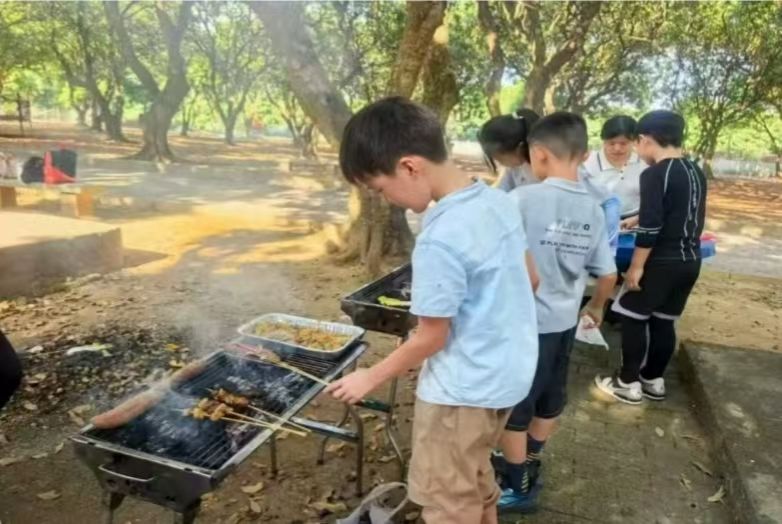 随后,大家沿着农场精心打造的果园小道漫步,开启亲近自然的田园之旅。小径蜿蜒,两旁果树错落有致,孩子们兴奋地穿梭在果树间,好奇地观察着果实的形状和颜色,不时向家长询问果树的品种和生长习性。大家放缓脚步,一边交流教学心得与生活趣闻,一边与孩子一起辨识各类果树,尽享田园间的盎然生机。现场气氛热烈而温馨。