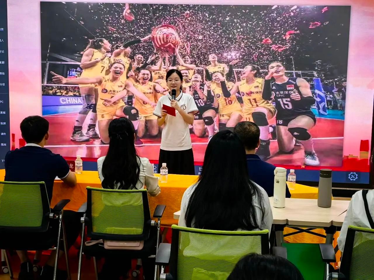 培训过程中,刘柳虾老师从“艰苦创业,铸就辉煌”、“女排精神,历久弥新”、“追光而行,初心如磐”三个部分展现了中国女排“四十年来十次登顶”背后的艰辛、汗水和付出,深刻诠释了“祖国至上、顽强拼搏、永不言败、团结协作”的女排精神。成员们感触颇深,无不为女排姑娘们喝彩,更加坚定了“讲好女排故事,传承女排精神”的信念。