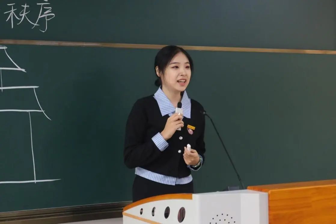 论坛伊始,24学科思政专业研究生陈雅淇和黄诗琴同学以初中教材第二单元第三课第一框“维护秩序”为题,分别进行自己的片段教学展示。陈雅淇同学以漳州古城秩序维护为例,从国庆期间古城人流量高峰时期为出发点,进一步对社会上存在的无秩序现象进行辨析,最后通过井然有序、人们安居乐业的古城作为对比,启发维护秩序的意义。黄诗琴同学则以“漳州110”这一时代楷模为引,引发大家思考“漳州110在秩序上起了怎样的作用呢?”辅以视频有趣地讲授了秩序的意义和类别,进一步通过漳州110品味秩序的时代意义。在教学过程中,两位同学灵活运用多媒体工具、智慧平板、智慧机器人等多种教具,板书设计和讲解相得益彰,充分展现了她们扎实的教学基本功。