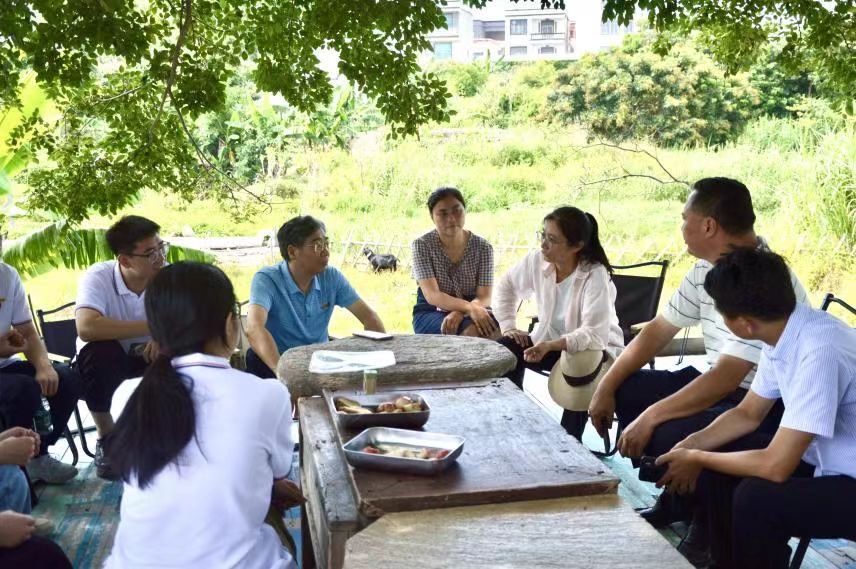 图为实践团成员与南浦村村干部对话