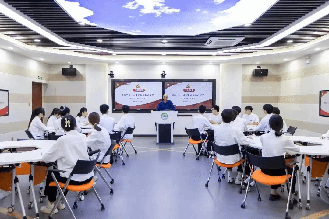 学生工作部积极构建“进课堂—骨干导学”“进社区—舍长领学”“进网络—全员共学”的“三进三学”宣讲模式,齐力推进学习宣传贯彻党的二十大精神宣讲全覆盖。