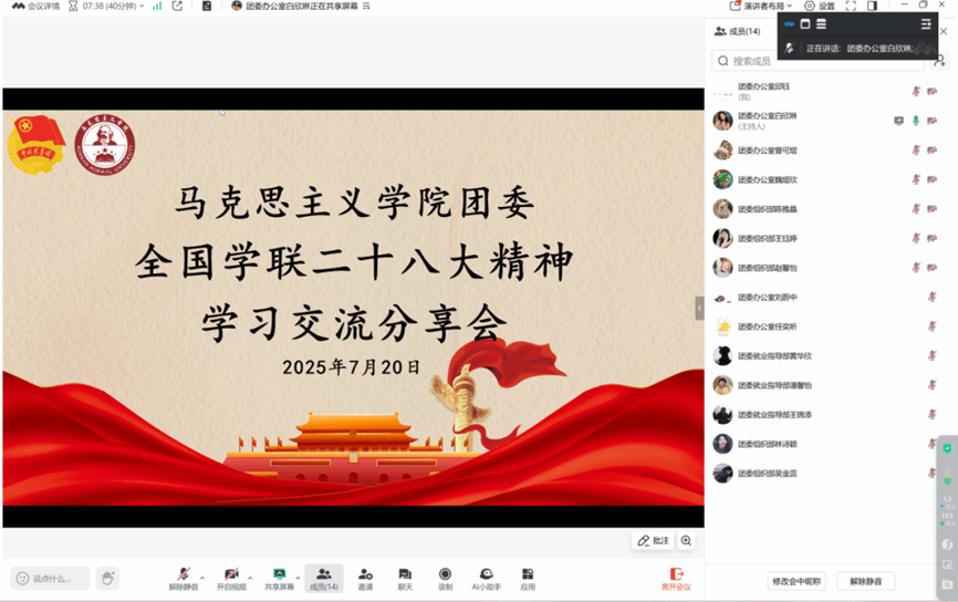 组织各班级、各学生组织通过线上形式召开习近平总书记致全国青联十四届全委会、全国学联二十八大重要贺信专题学习会。(通讯员 杨纯真)