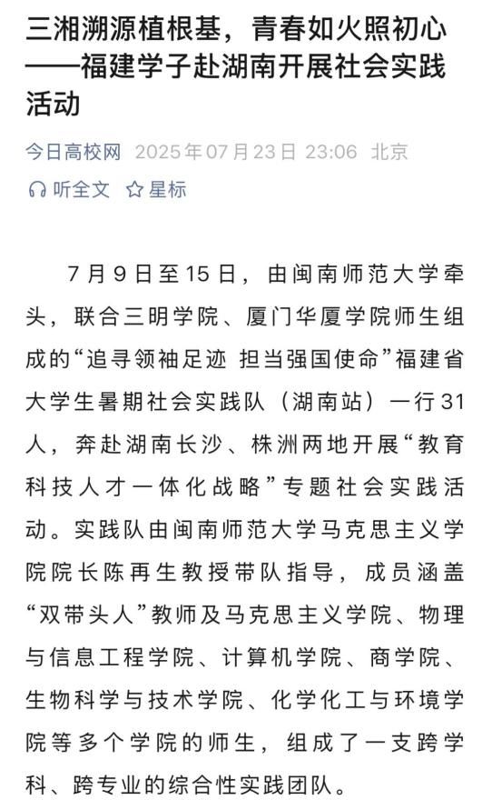 8、今日高校网:三湘溯源根基,青春如火照初心——福建学子赴湖南开展社会实践活动