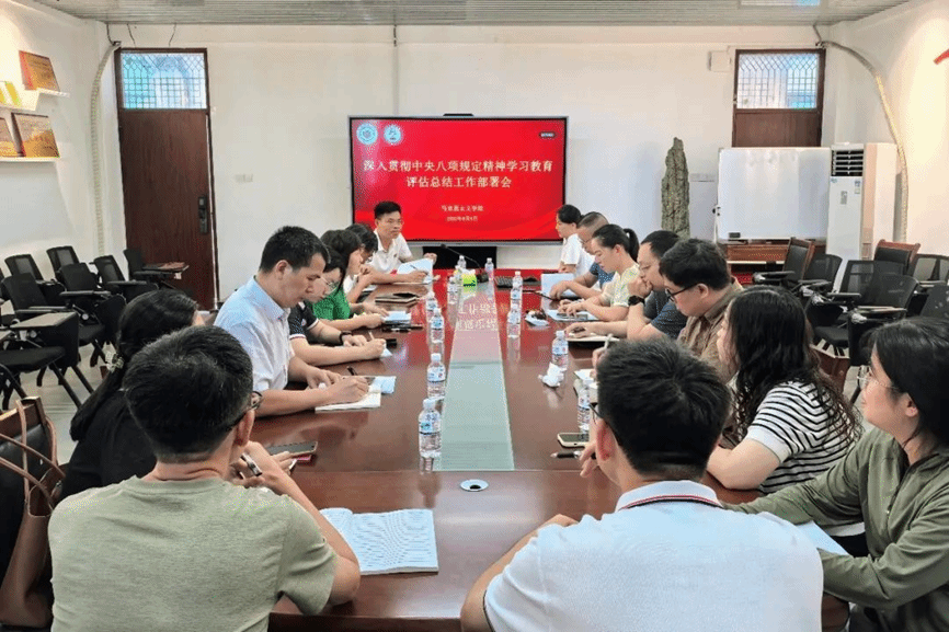 召开深入贯彻中央八项规定精神学习教育评估总结工作部署会议。全体班子成员、科级干部、党支部书记以及学生党员代表参加会议。会议由党委书记方琼主持。(通讯员 汪相汝)