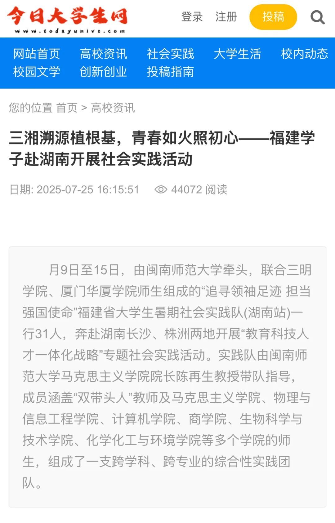 8、今日高校网:三湘溯源根基,青春如火照初心——福建学子赴湖南开展社会实践活动