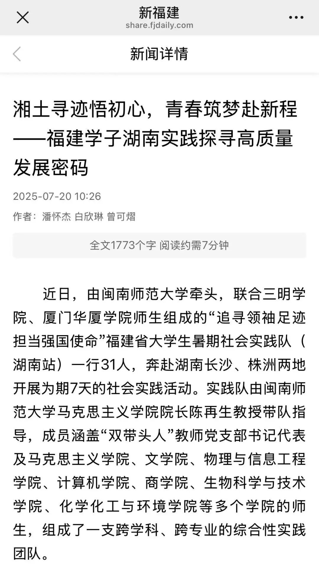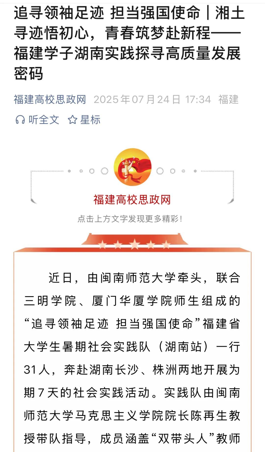 12、新福建:寻访湖湘文脉,探索教育科技人才融合发展新路径——福建省大学生暑期社会实践示范队在湖南