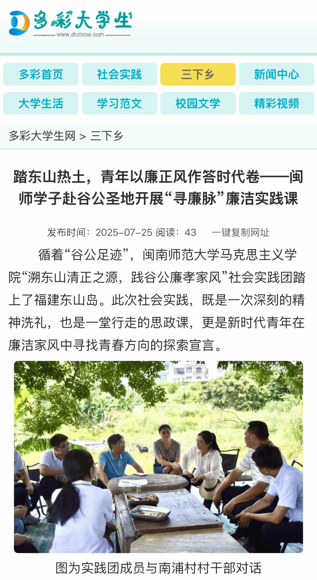 11、多彩大学生网:踏东山热土,青年以廉正风作答时代卷——闽师学子赴谷公圣地开展“寻廉脉”廉洁实践课
