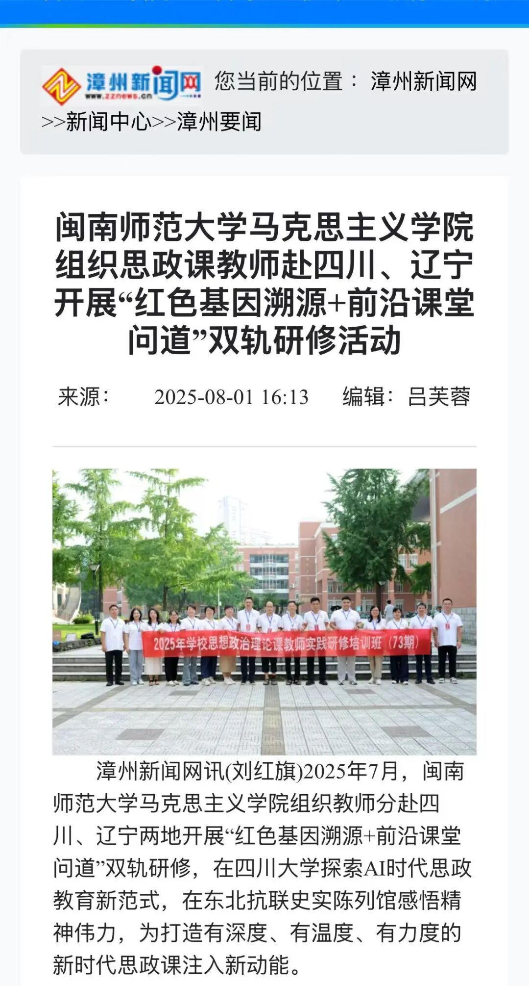 组织思政课教师赴四川、辽宁 开展“红色基因溯源+前沿课堂问道”双轨研修活动